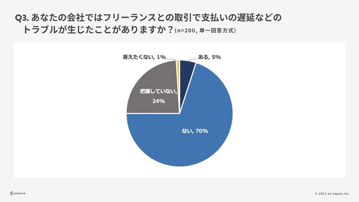Q3. あなたの会社では、フリーランスとの取引で支払いの遅延などのトラブルが生じたことはありますか?