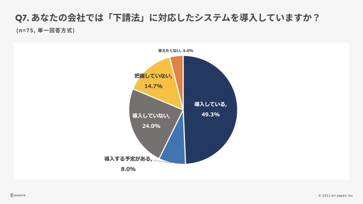 Q7. あなたの会社では、「下請法」に対応したシステムを導入していますか?