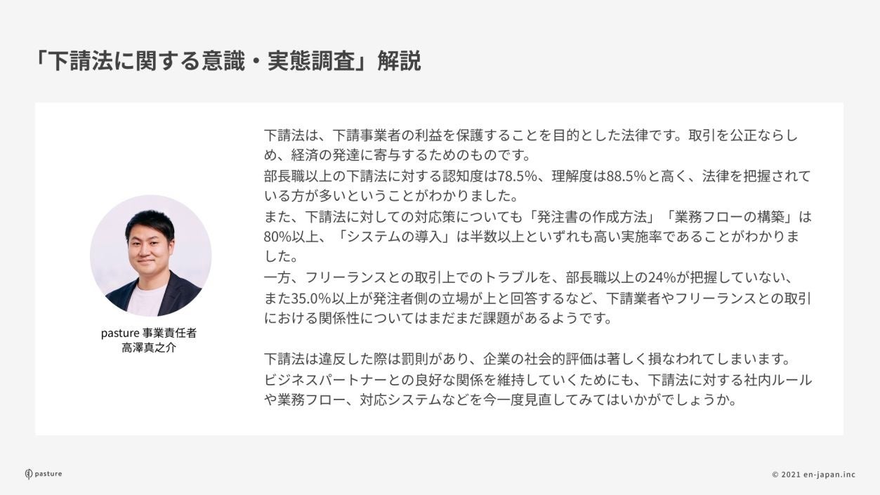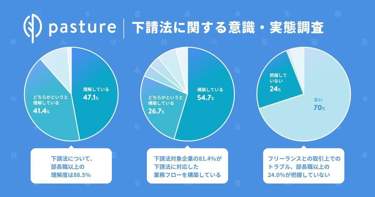 下請法について、部長職以上の理解度は88.5%と回答 pasture調べ「下請法に関する意識・実態調査」