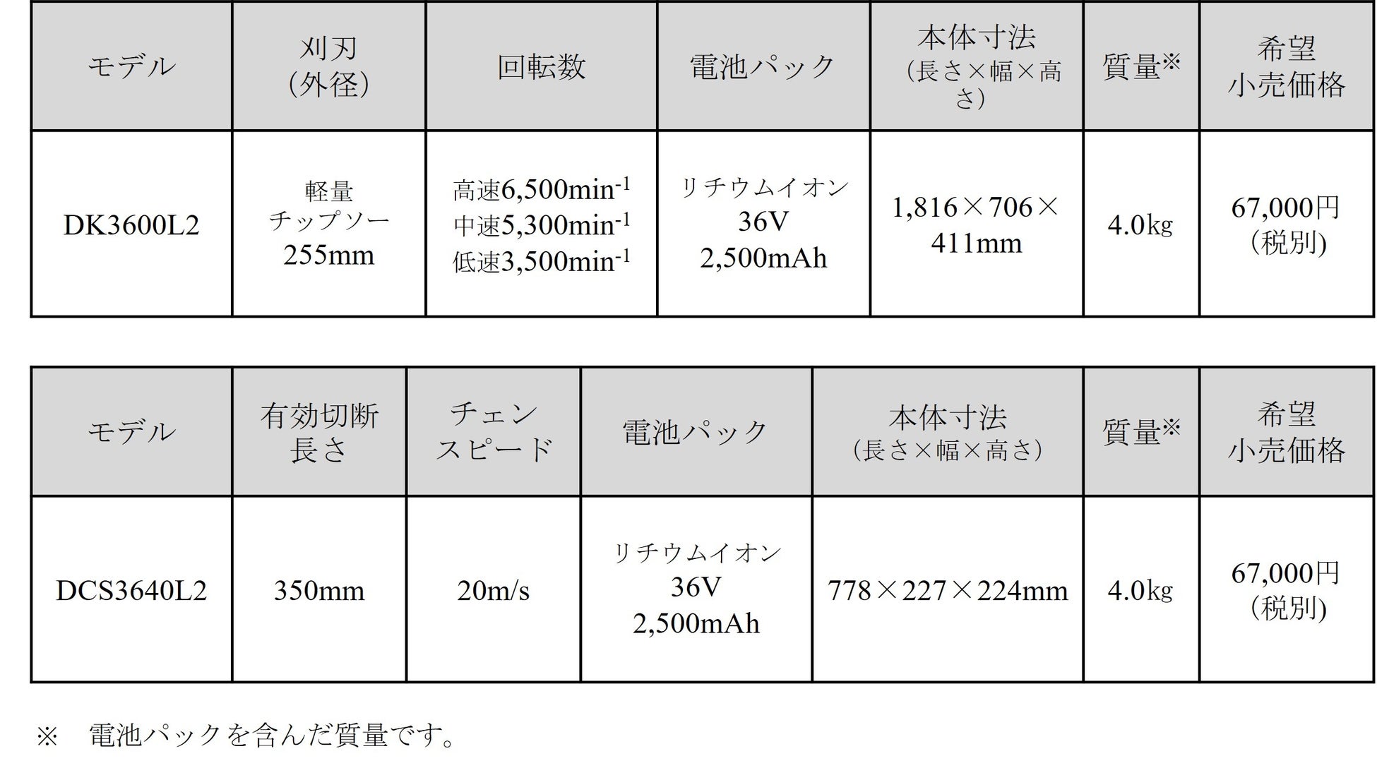 ■ 充電式刈払機「DK3600L2」、充電式チェンソー「DCS3640L2」の特長