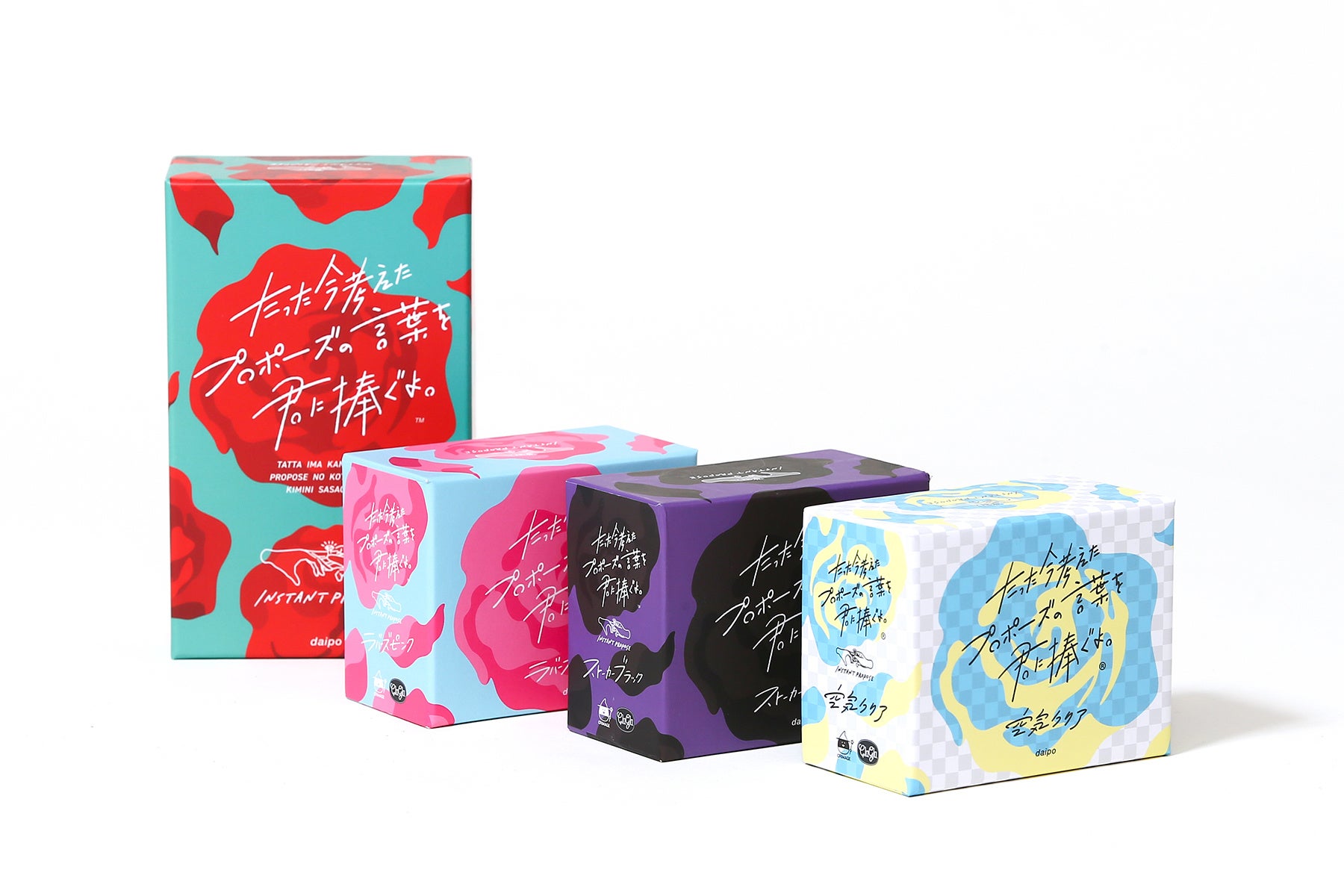 『たった今考えたプロポーズの言葉を君に捧ぐよ。(以下『プロポーズ』)』は親プレイヤーがゆっくり10数える間に12枚のカードを組み合わせてプロポーズの言葉を作り、親プレイヤーにプロポーズをするというシンプルなボードゲーム!シリーズ累計15万部の大人気作品となっています。そんな『プロポーズ』と、『週刊少年サンデー』で大人気連載中の『トニカクカワイイ』(原作:畑健二郎)がコラボレーション!通常版『プロポーズ』のカードに混ぜて遊べるコラボミニ拡張セットとなっています。