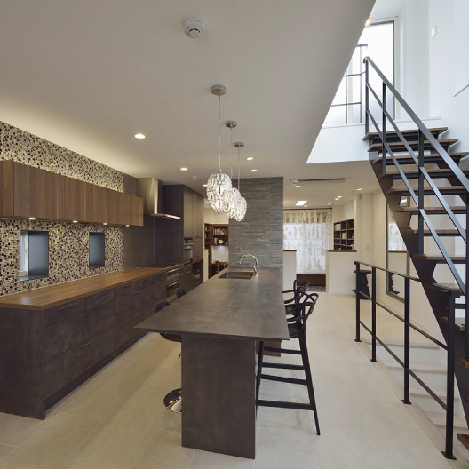 3階の撮影・配信スタジオは落ち着いたカウンターキッチン、ラグジュアリーな環境となってます。