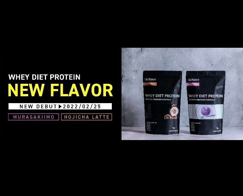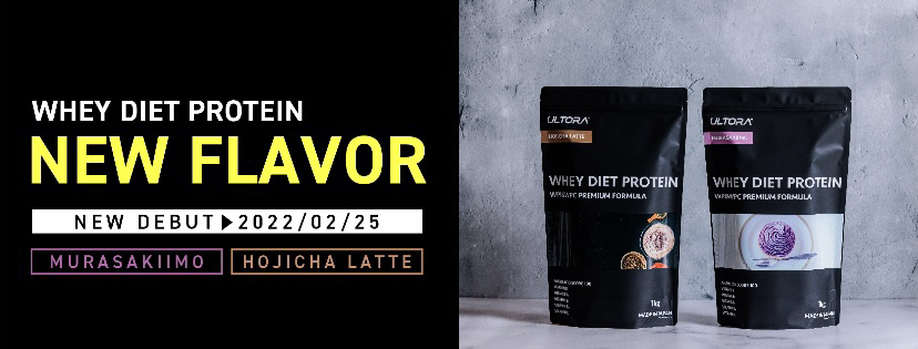 ホエイプロテインを展開する株式会社ULTORA(本社:東京都恵比寿、以下弊社)は、公式オンラインストアにて2月25日(金)よりホエイダイエットプロテイン「紫芋風味」と「ほうじ茶ラテ風味」を新発売します。(1㎏税込み価格:¥4,790 450g税込み価格:¥2,890