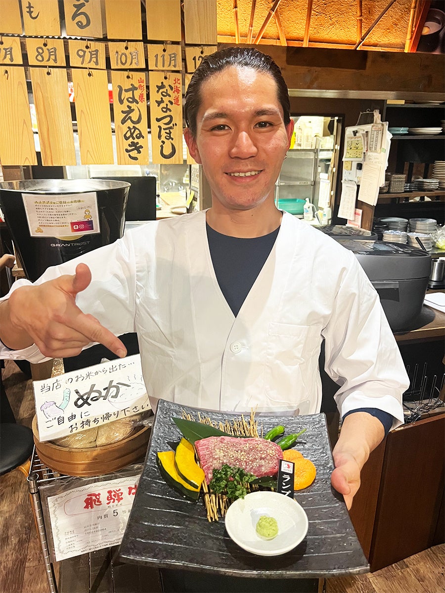店内でも手切りにこだわり、ほぼすべてのお肉を職人がカット。さらに、店内の精米機で精米したてのお米を使用し、釜炊きでふっくら炊き上げるご飯は、飛騨牛との相性が抜群です。