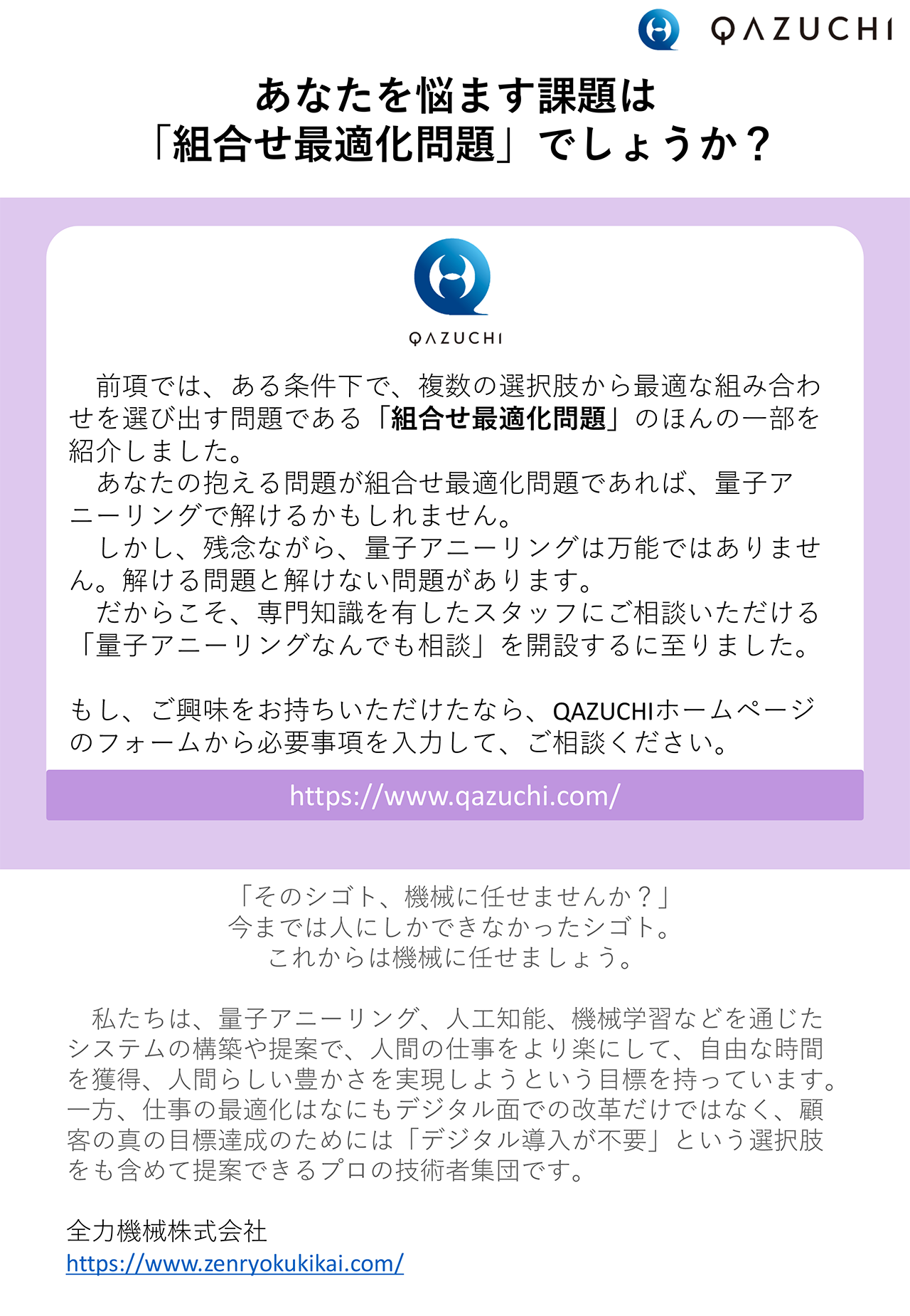 量子アニーリングなんでも相談窓口:https://www.qazuchi.com