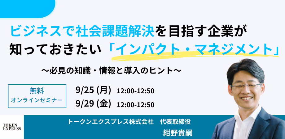 【9/25(月)12時・9/29(金)12時】ビジネスで社会課題を目指す企業が知っておきたい「インパクト・マネジメント」~必見の知識・情報と導入のヒント~