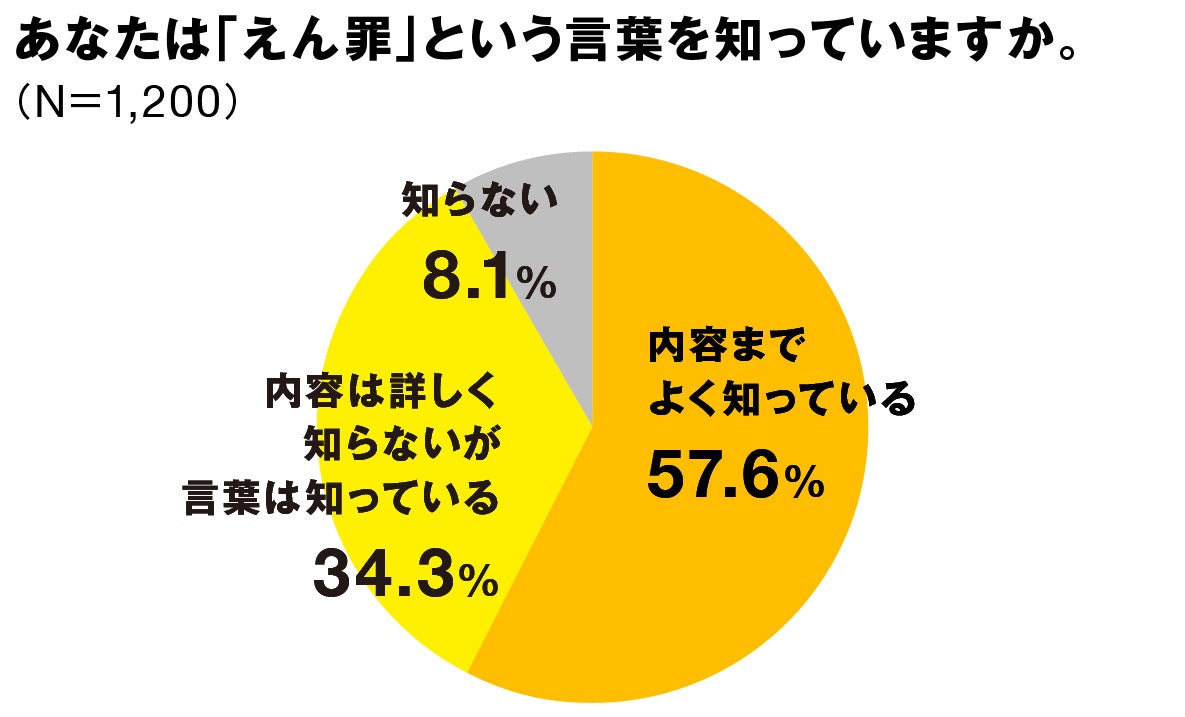 今回の調査によると、9割以上の人がえん罪という言葉を知っており、また約6割がえん罪に「関心がある」「やや関心がある」と回答しています。このことから、えん罪に対する関心の高さがうかがえます。