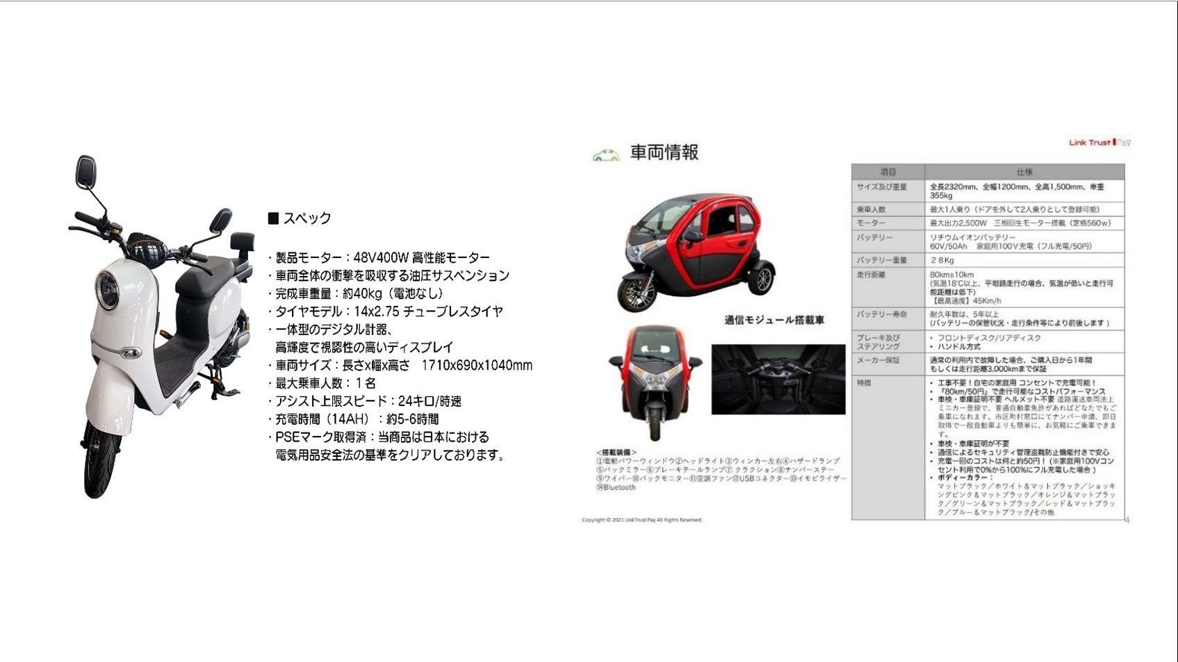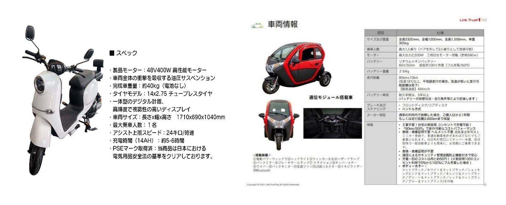 リンクトラスト・ペイ株式会社(本社:東京都新宿区、以下、LTPという)は、電動バイク(以下、EVという)の輸入販売、メンテナンス及びアフターサービス提供の体制を整え、「小型モビリティ共同プロジェクト」をスタートさせました。