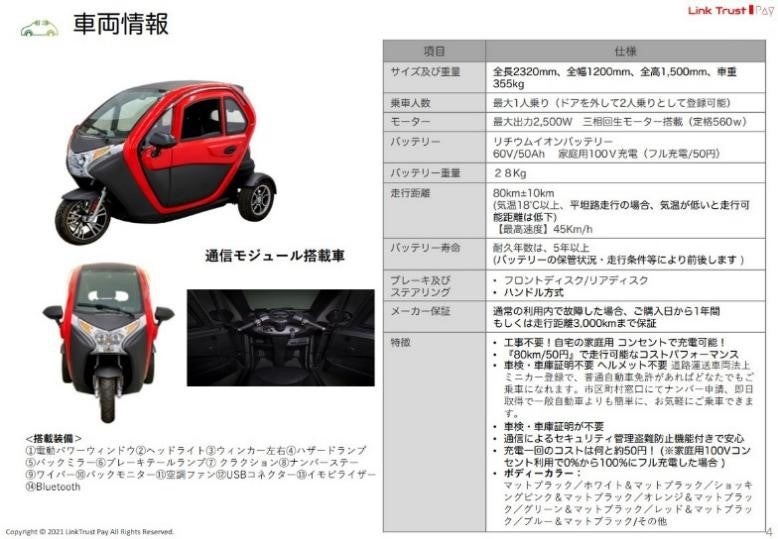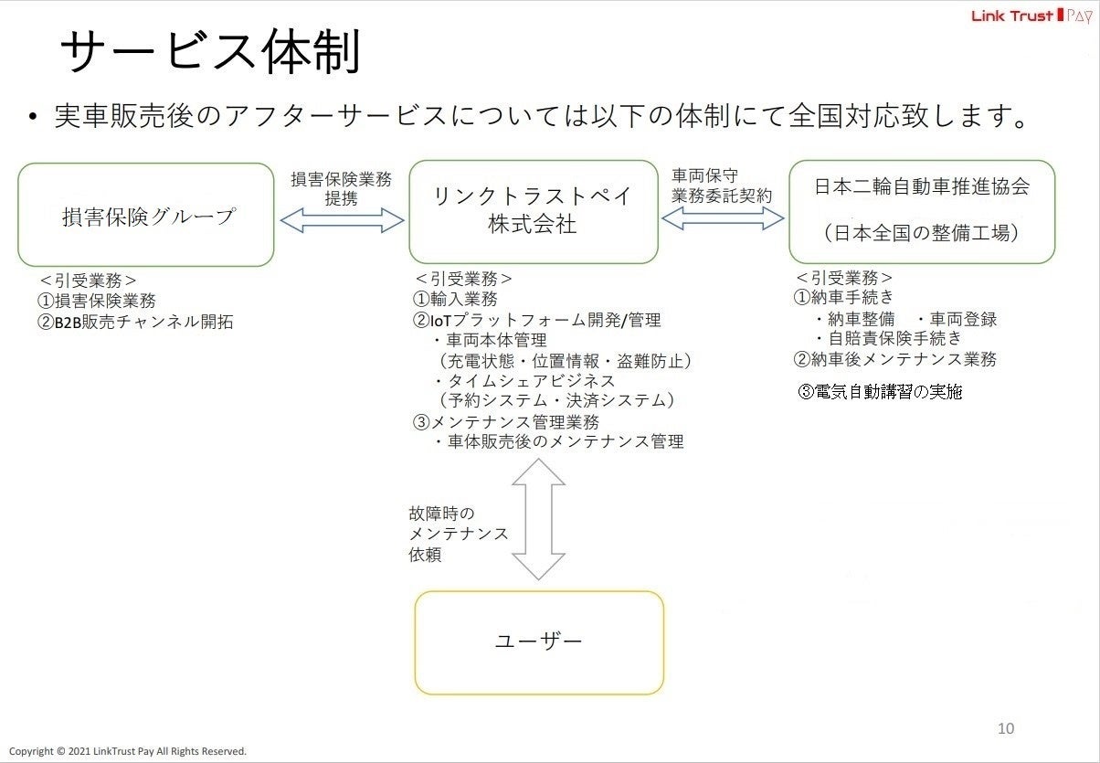 日本国内での「スマホ・マルチ決済」や「非対面型キャッシュレス決済」を手がけるリンクトラスト・ペイ株式会社(本社:東京都新宿区、以下、LTPという)は、今般、一般社団法人日本二輪自動車推進協会(本社:東京都千代田区、以下、JAMPAという)及び大手損害保険グループ会社(以下、損害保険グループという)と協業し、電動バイク(以下、EVという)の輸入販売、メンテナンス及びアフターサービス提供の体制を整え、「小型モビリティ共同プロジェクト」をスタートさせました。
