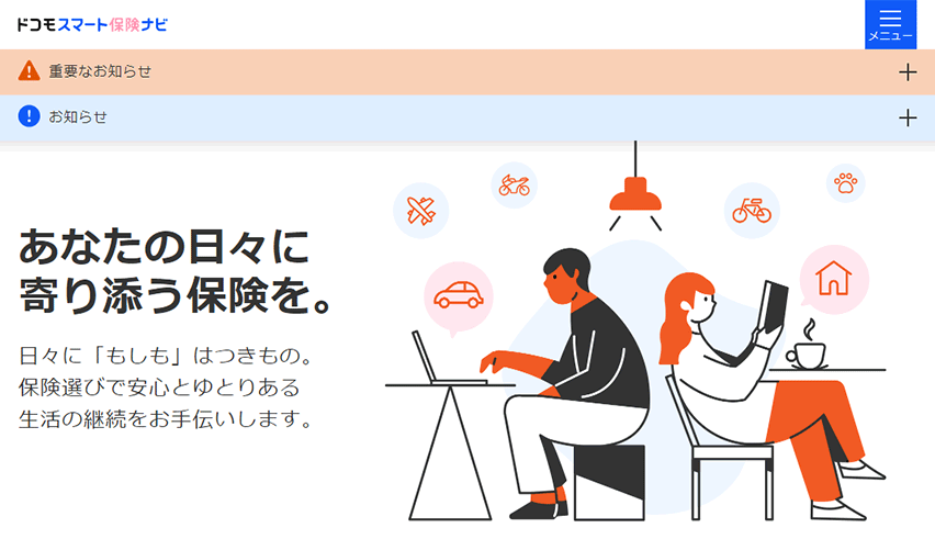 今後もすべての方にとって保険を身近にするとともに、保険を手軽に選んでご契約いただけるサイトの実現を目指してまいりますので、引き続きドコモ・インシュアランスをよろしくお願い申し上げます。