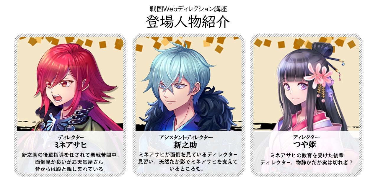 「戦国WEBディレクション講座」は、マンガでWEBディレクションのノウハウを学べるコンテンツです。現在WEBディレクション業務に従事されている方、WEBディレクターを目指す方におすすめです。具体的なプロジェクトの中で、WEBディレクターのもとに発生する諸問題や悩みの解決方法を、OJT形式で学べるように構成されています。