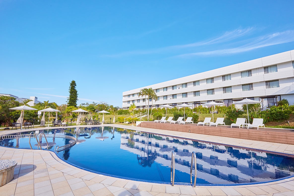 本ホテルは、1975年(昭和50年)の沖縄県の本土復帰記念事業として沖縄県国頭郡もとぶ町で開催された「沖縄国際海洋博覧会」の際に建設された歴史あるホテルで、周辺には人気の「沖縄美ら海水族館」や「備瀬のフクギ並木」、「エメラルドビーチ」など沖縄の豊かな自然に恵まれた環境にあります。