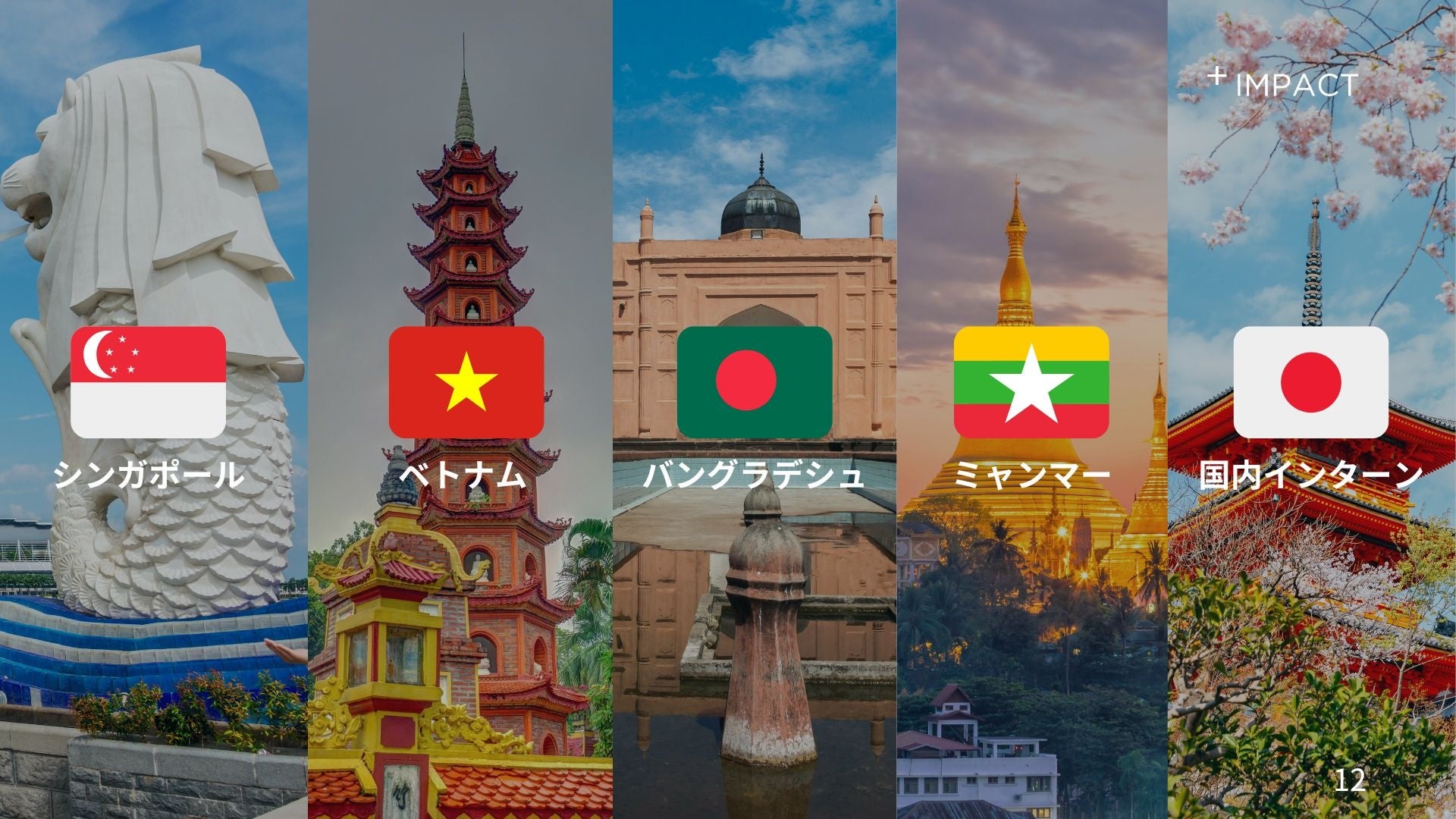 さらに、こうした拠点開設・事業拡大のタイミングに合わせて、各拠点における0→1や1→100フェーズを共にする大学生向け国内/海外インターンプログラム「GLOBAL IMPACT CHALLENGE 2025」の募集を開始しました。実際の事業経験を通じて「起業」「海外滞在」「英語力向上」が身に付く本プログラムは、拠点開設から事業拡大に至るまでのリアルなプロセスに触れながら、グローバルな視野で学び、挑戦できることが大きな魅力です。