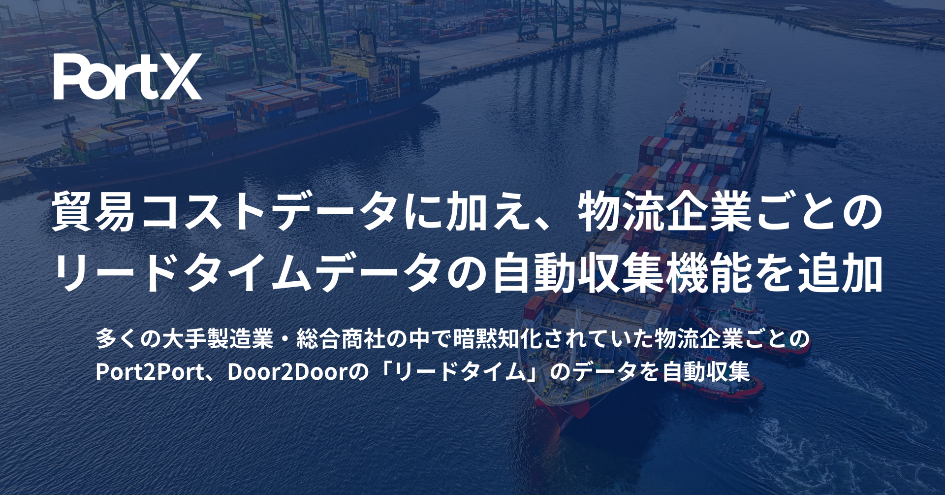 国際物流の見積業務を自動化し、貿易コストを削減するクラウドサービス「PortX」において、多くの大手製造業・総合商社の中で暗黙知化されていた物流企業ごとの「リードタイム」のデータを自動で収集する機能を追加しました。