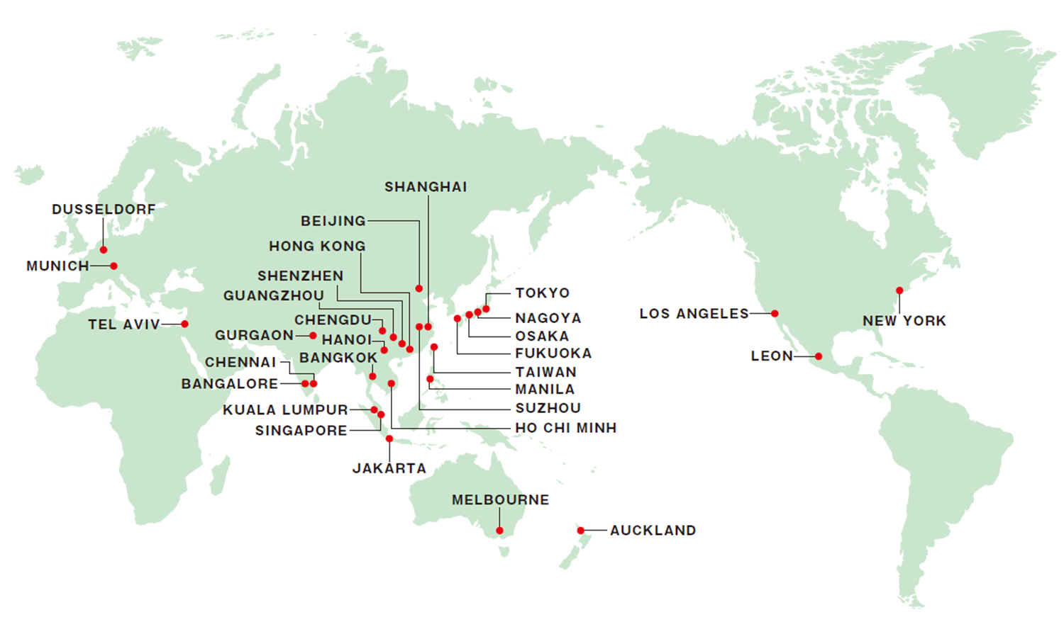 世界17ヵ国/地域、30直営拠点 (2022年6月時点)