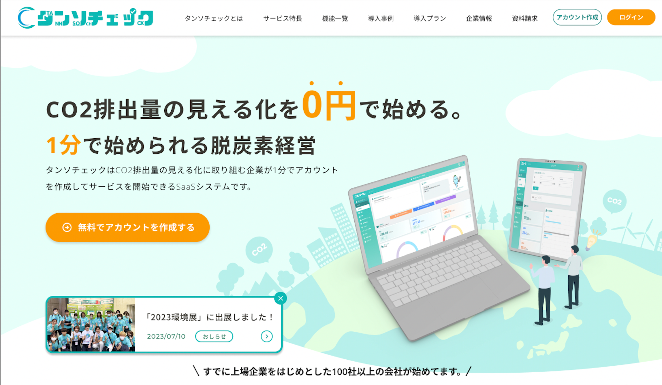 事業:「タンソチェック」CO2排出量可視化、削減ツール、脱炭素経営支援事業