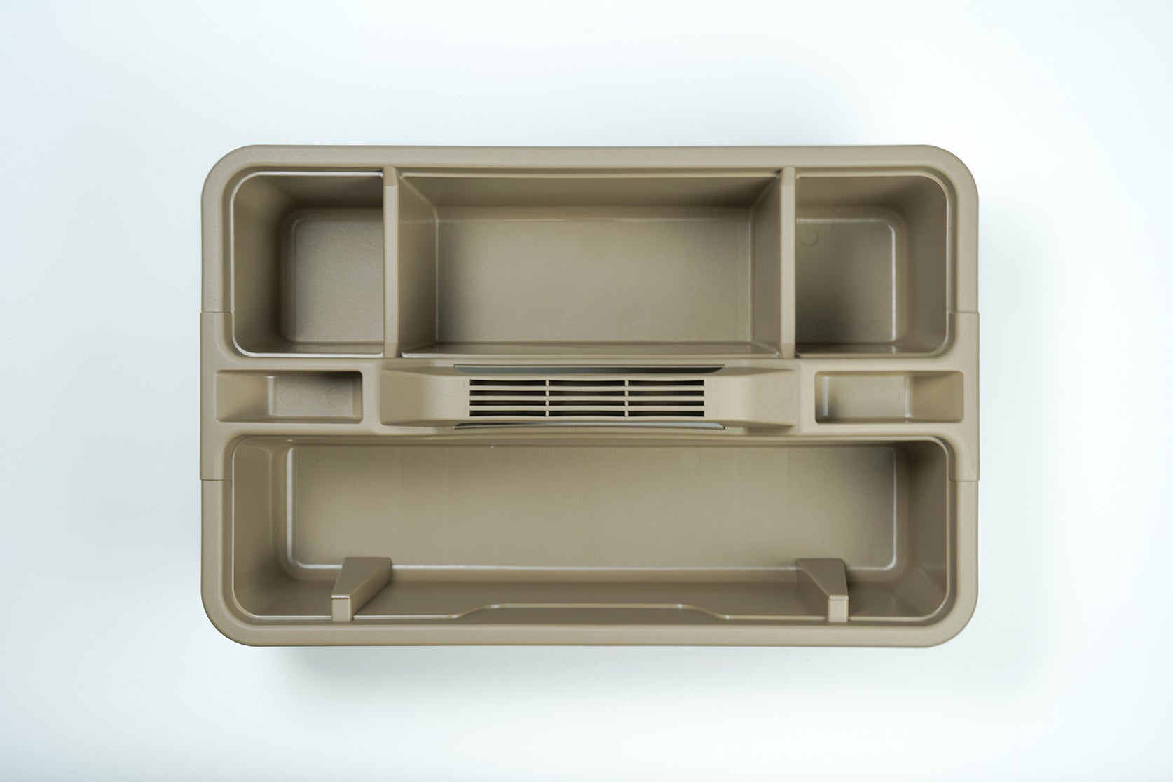 | 商品名:TH-465 カラー:グリーン、ブラウン(全2色) サイズ:465(L)×300(W)×170(H)mm 重量:0.97kg 材質:高耐衝撃性コーポリマー 原産国:日本 ※写真は2つの「TOUGHREE(タフリー)」をスタッキングした例です。 |