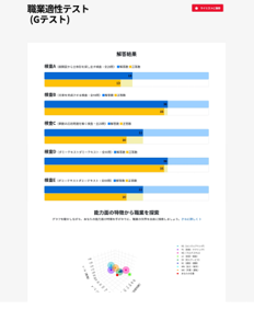 能力面の特徴から適職を探索できるGテストに、さらに2つの検査が追加されました。従来の3種類の検査に加え、2種類の検査を追加で行うことで、さらに適職を絞り込むことができるようになりました。