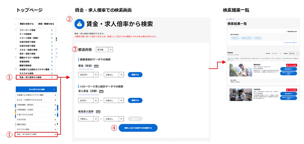 ②賃金などからの検索が可能に!【その2】“キャリアチェンジ”に役立つ情報や機能が追加。