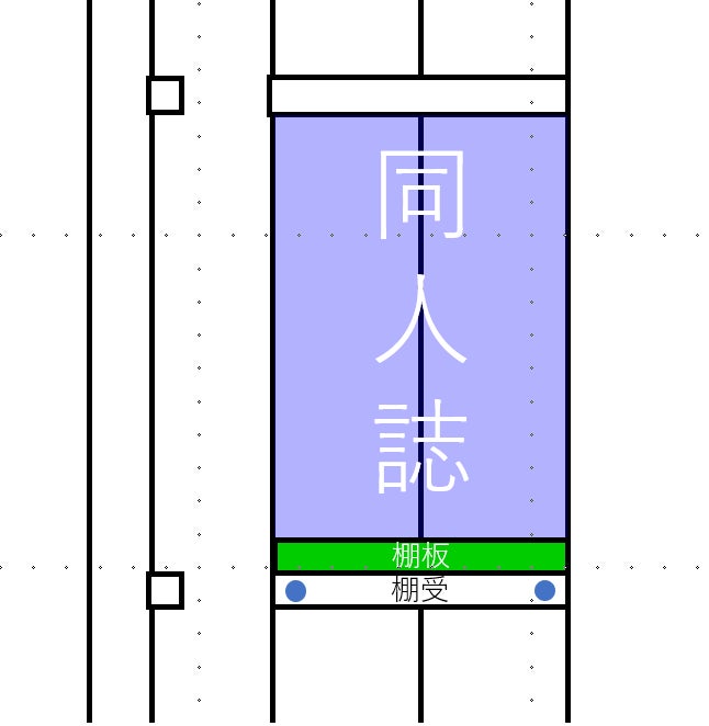 24pの同人誌の厚さを1.5mmとすると、80cmの棚には533冊入るため、一つの棚につき1コミケといったサイズ感になっています。