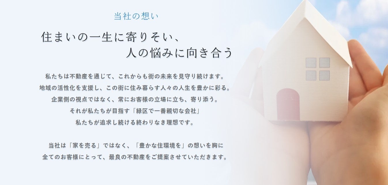 私たちのお客様、不動産、住まい、地域社会への”想い”をお受け取りいただき、