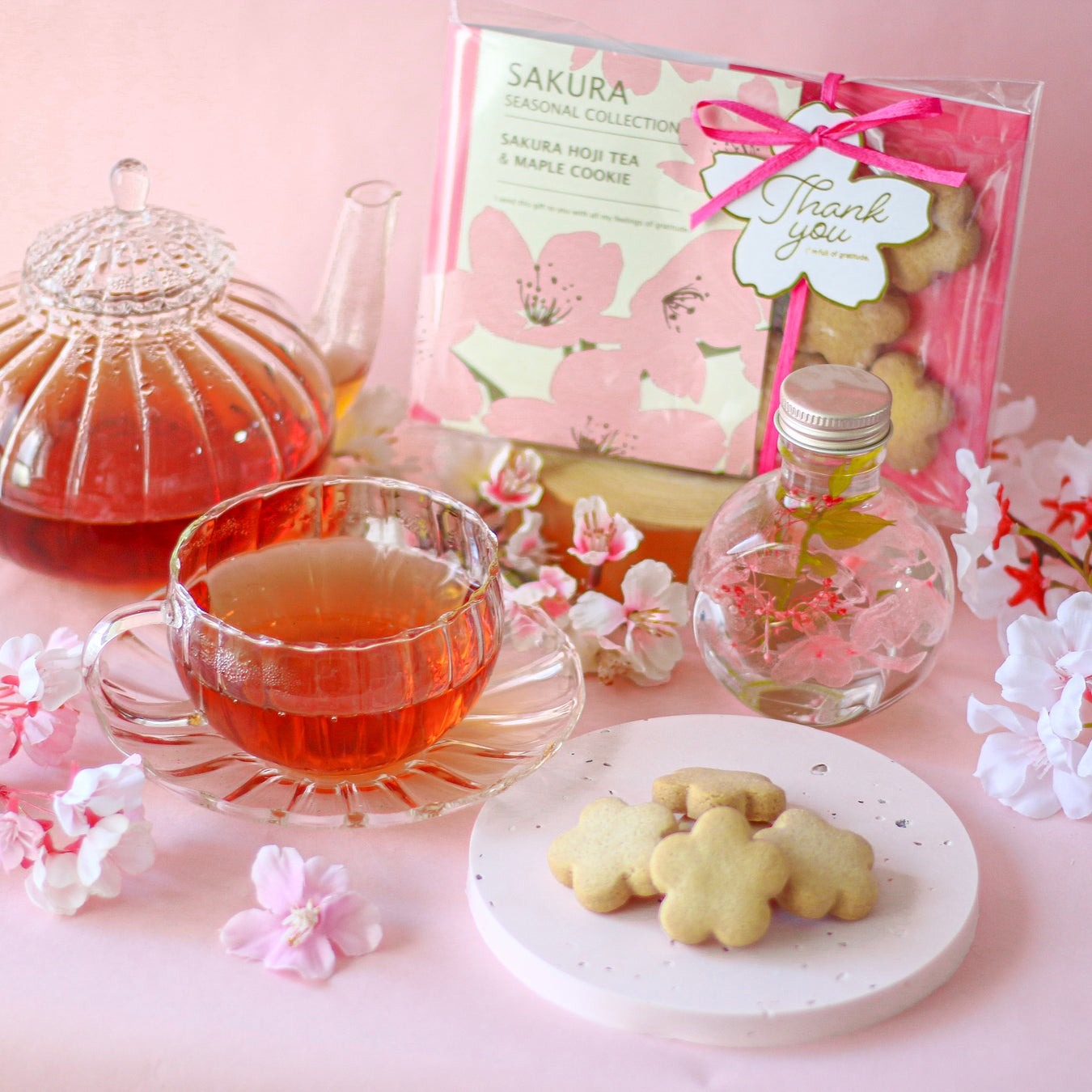 ◆FLOWERiUM®︎ 桜ギフトセット<Sakura & ほうじ茶 & クッキー>◆