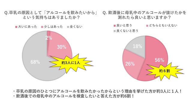 ・「少しでも母乳にアルコールが含まれるのが怖かったので、授乳中は絶対禁酒で頑張っていたのですが、もしアルコールが抜けたかどうかを測れたら、産後のストレスも減っていたと思う。」
