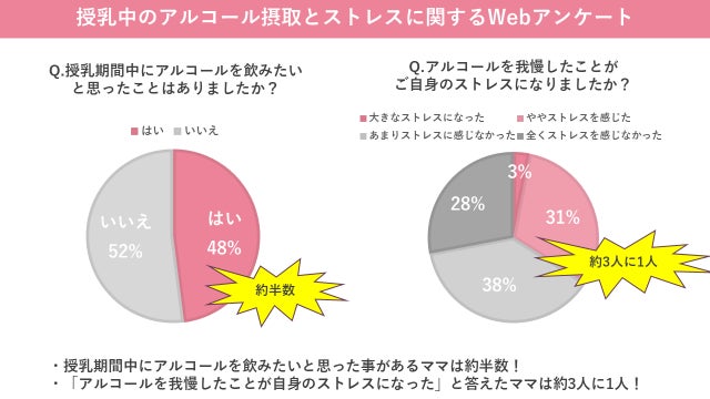 授乳経験のあるママの約2人に1人が「お酒を飲みたい」と思った事があると回答。約3人に1人が卒乳の原因の一つに飲酒を挙げる現状も。【授乳とアルコールに関する調査結果】