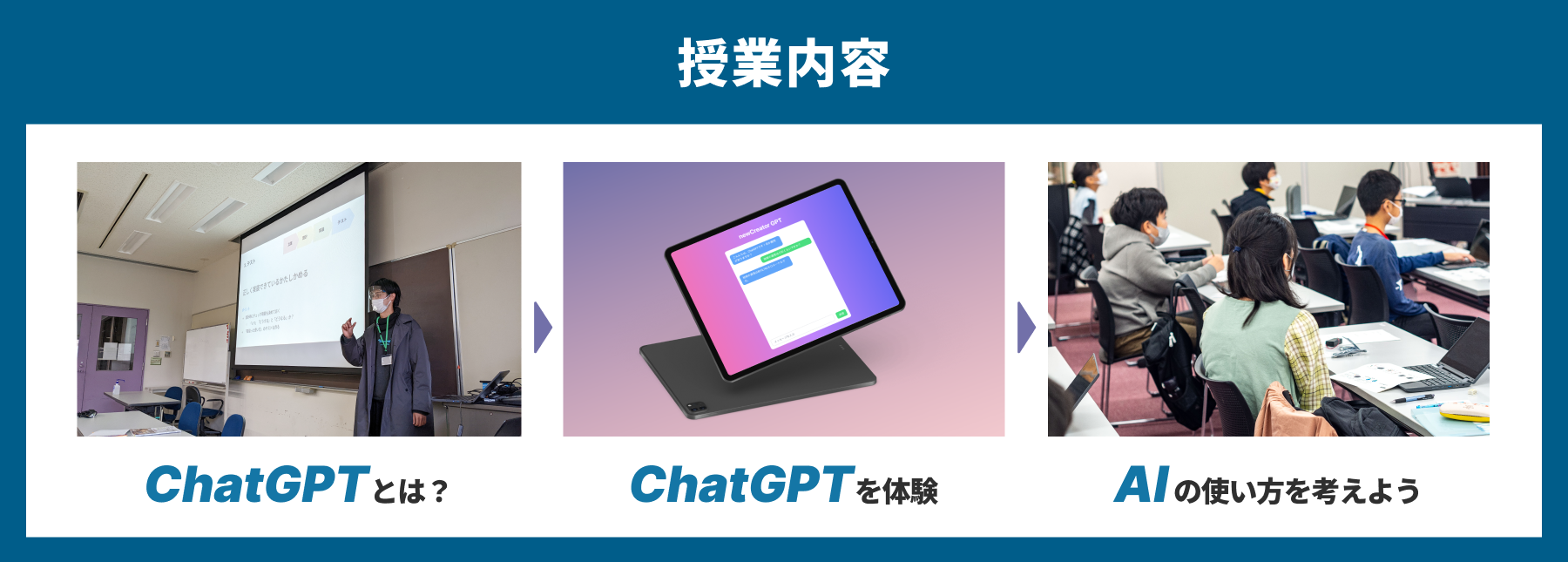 本授業では、講師がChatGPTの利用方法を説明しながら、実際に生徒の皆さんに体験をしていただきます。