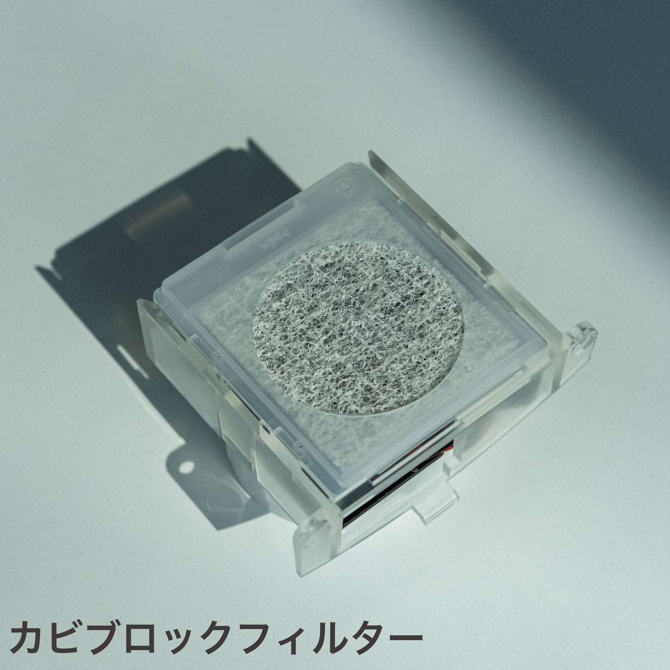 さらに、タンク内にカビや不純物が入らないようにカビブロックフィルターを送風機に搭載しているので、タンク内が汚れにくく、常に清潔にご使用いただけます。