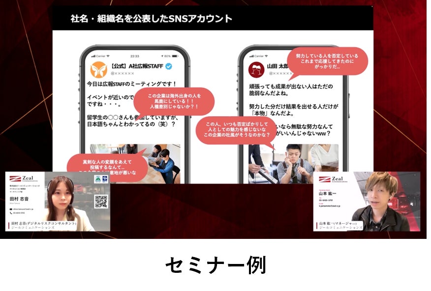 今回は、ゲームクリエイターを様々な障害から護る「Online Creator GAMES」と、多くのSNS炎上やデジタルリスクに対する分析やナレッジを発信しているジールコミュニケーションズのコラボレーションにより、「ゲーム実況における本質的なリスクの認知と対策」を紐解くセミナーが実現しました。