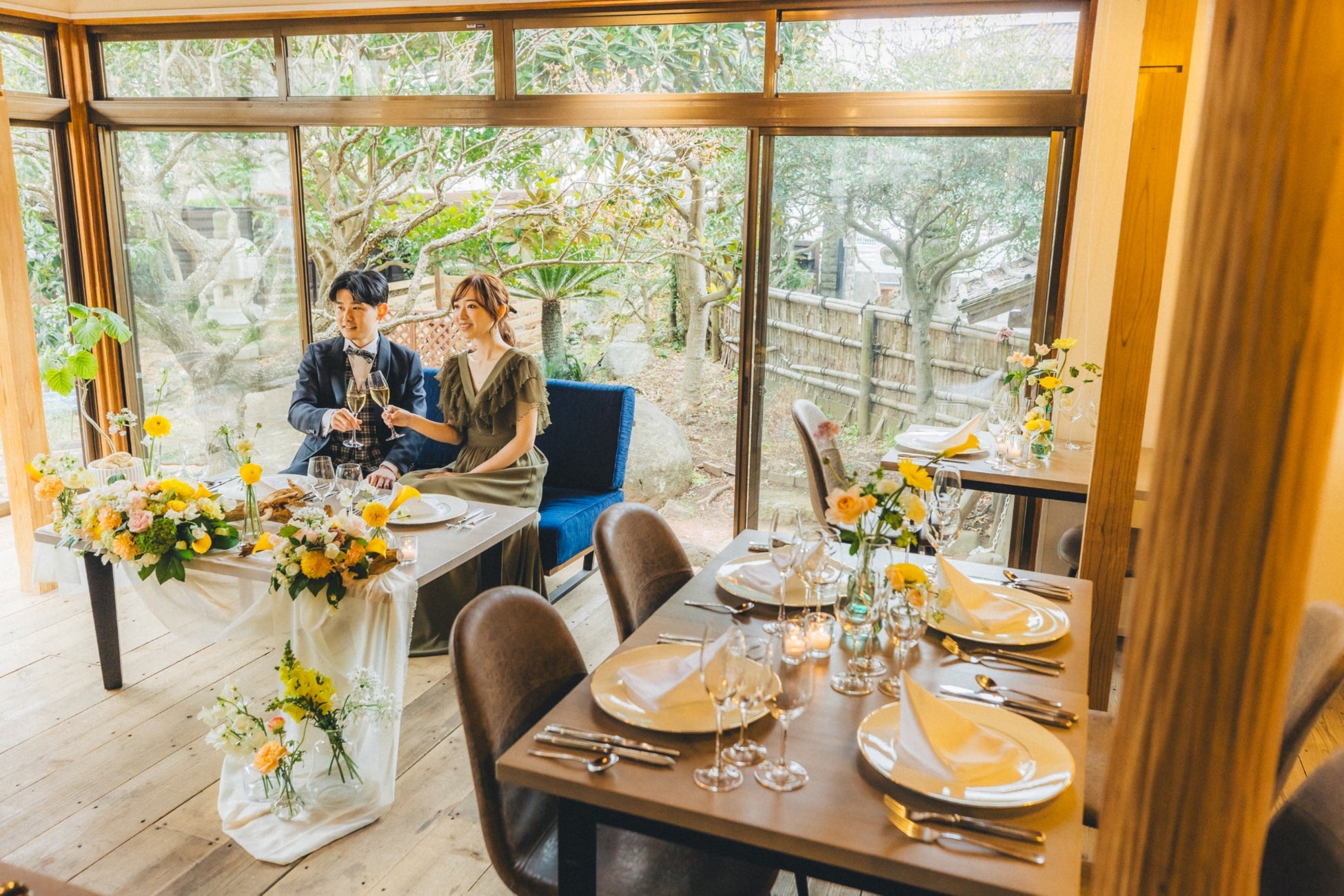 クラシックな洋館とはまた異なる、鎌倉らしいゆったりとした雰囲気の中で、食事や会話を楽しむ時間は、従来の披露宴とは一味違う心地よさがあります。