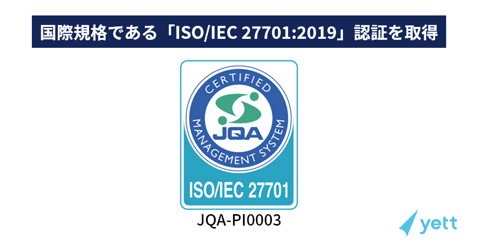 株式会社yett、国際規格である「ISO/IEC 27701:2019」(プライバシー情報マネジメントシステム)の認証を取得(ISMS-PIMS認証)