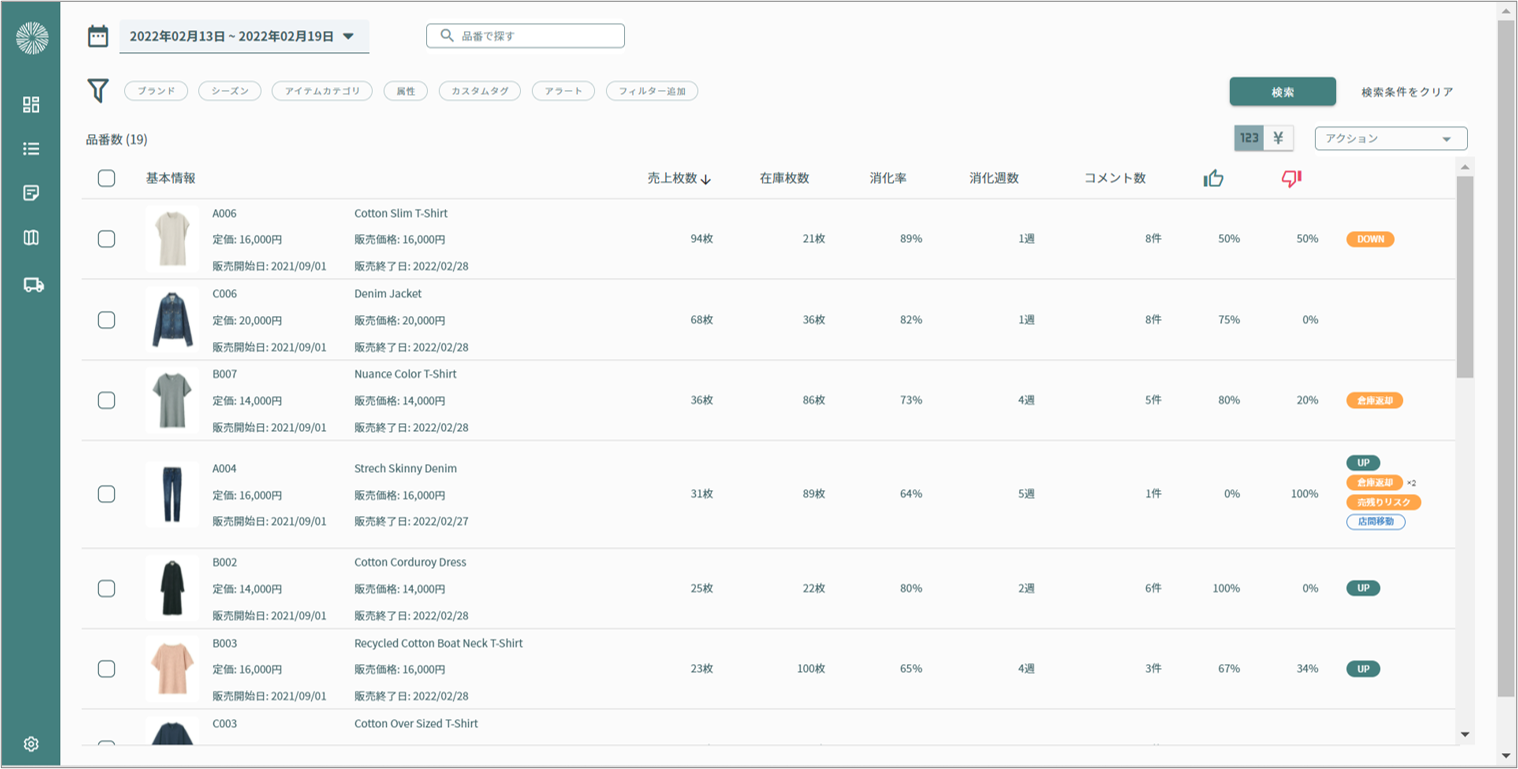 radialは、アパレル企業の意思決定者のために開発されたシステムで、POS・ECシステム・WMS(倉庫システム)に散らばった売上・在庫データをリアルタイムに自動集計し、意思決定に繋がる分析・インサイトを可視化します。