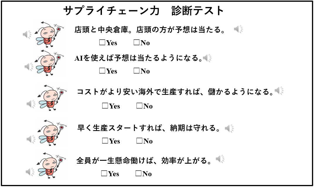 2022年1月14日リリースの動画「衝撃の現実!日本のサプライチェーンがうまく行かない理由とは?」ではYes/No形式で、これまでの常識が誤りだったことがわかる「サプライチェーン力診断テスト」が登場します。