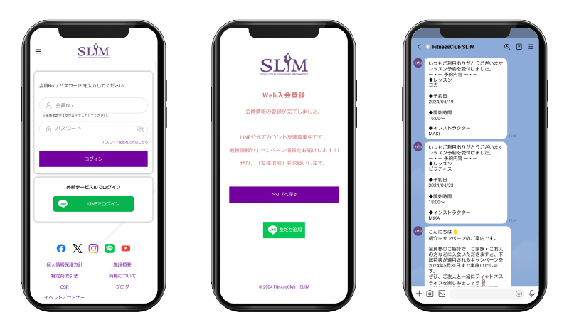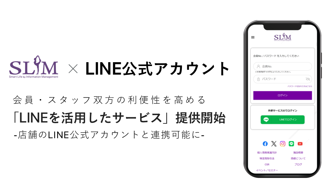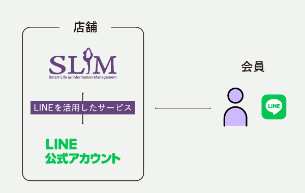そのような背景を受け、SLIMでは新たに「LINEを活用したサービス」の提供を開始しました。「LINEを活用したサービス」を利用いただくことで、会員はスタッフからの通知をLINEで受け取ることができるようになります。