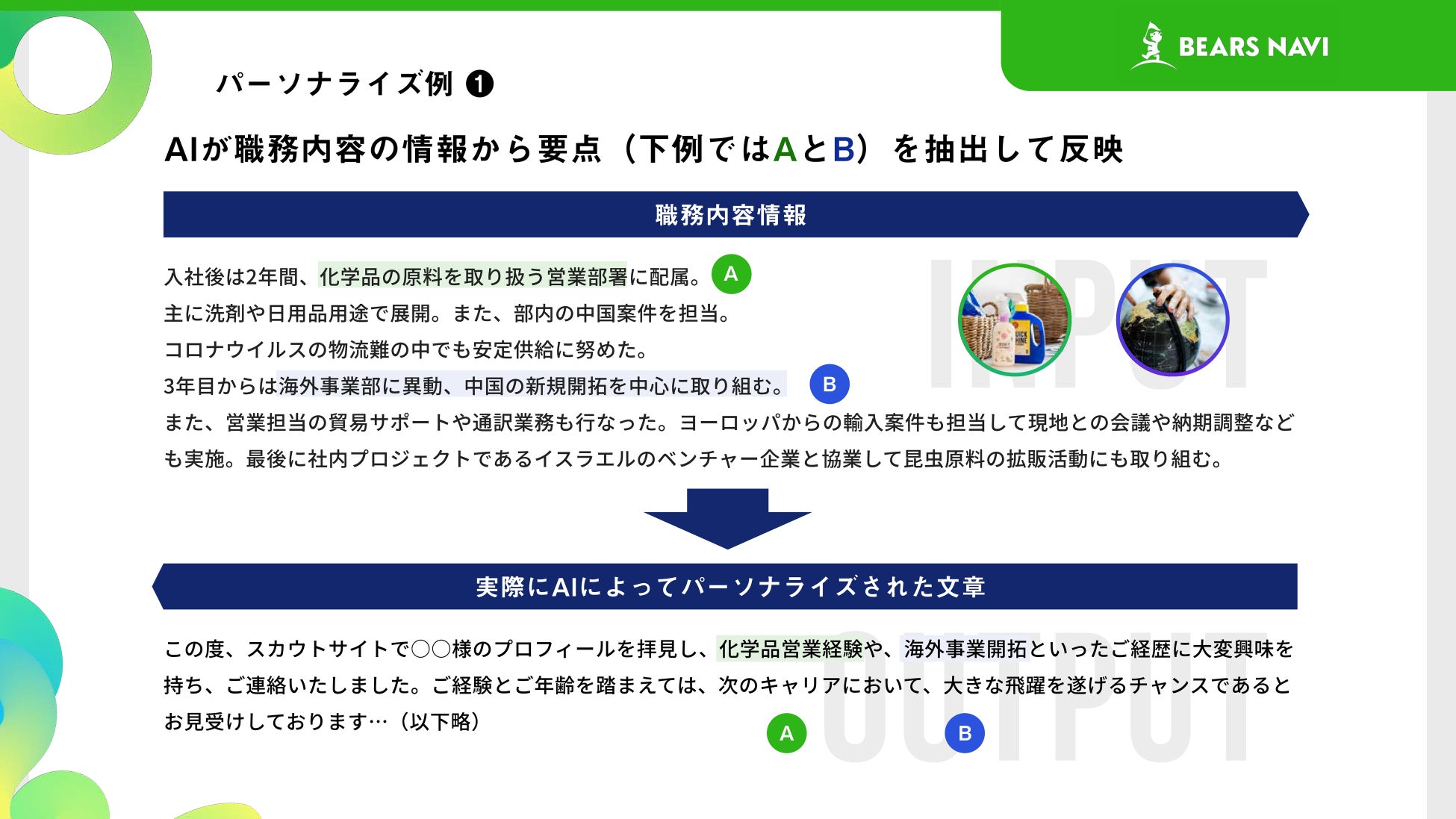 ベアーズナビ株式会社(代表取締役:甲佐 陸空人、本社:東京都渋谷区、以下「ベアーズナビ」)は、このたび、生成AIによる自動スカウト送信サービス、「AIスカウト」を先着100社限定で、3ヶ月の間完全無償で提供させていただきます。