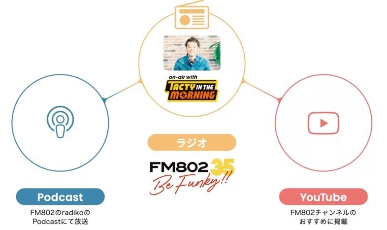 インタビューの本編はYouTubeとPodcastで公開し、ラジオ番組内では月曜日の朝に前向きな気持ちになれる音楽と合わせて、DJ大抜卓人さんが感想を交えて簡潔に紹介します。