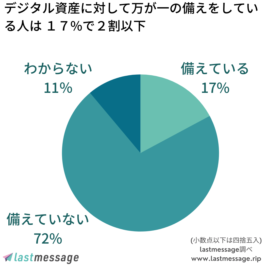 一方、デジタル資産*³に対しての結果をみると、万が一の備えをしている人は17%と2割に満たないわずかな数値であり、さらに備えをしていないことに不安を感じる人は55%と半数以上にのぼりました。
