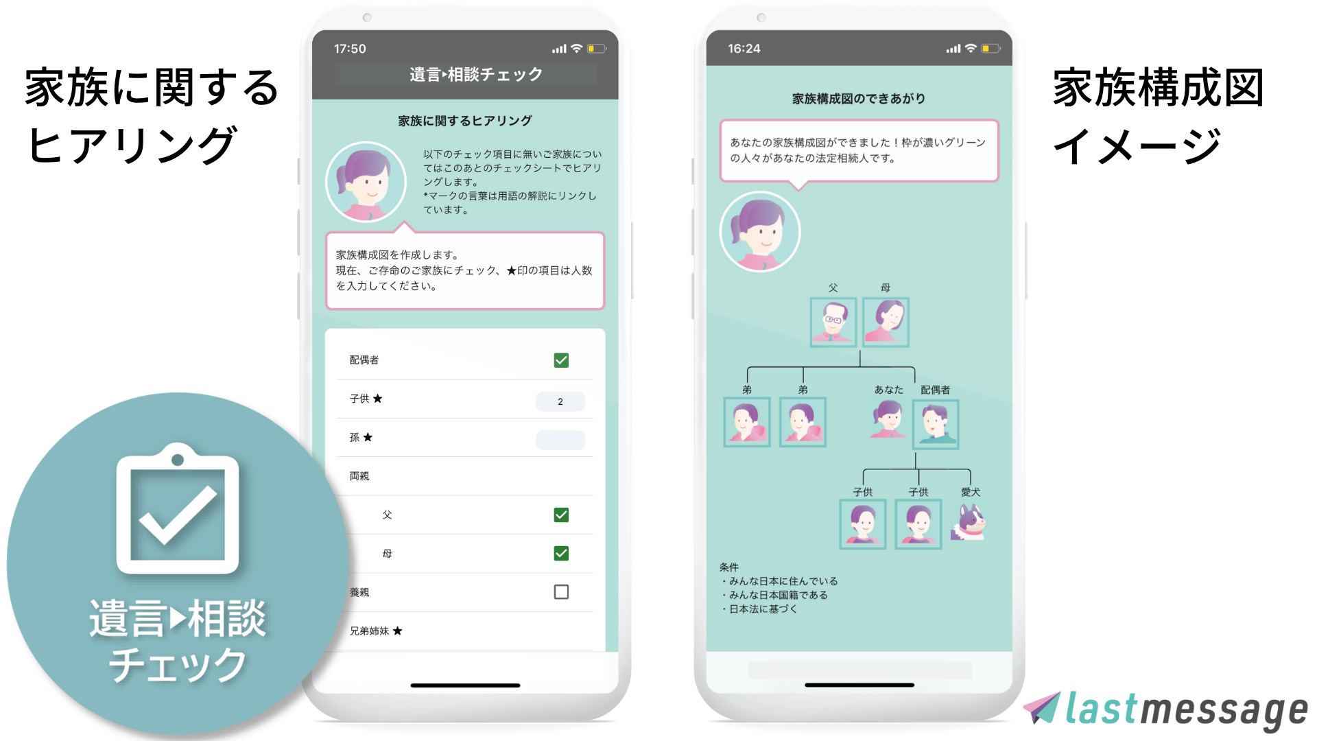 デジタル遺言*lastmessage(ラストメッセージ)の専門家が監修!はじめてのひとの【遺言‣相談チェック】無料オンライン診断ツール誕生、家族構成図が作成できます!