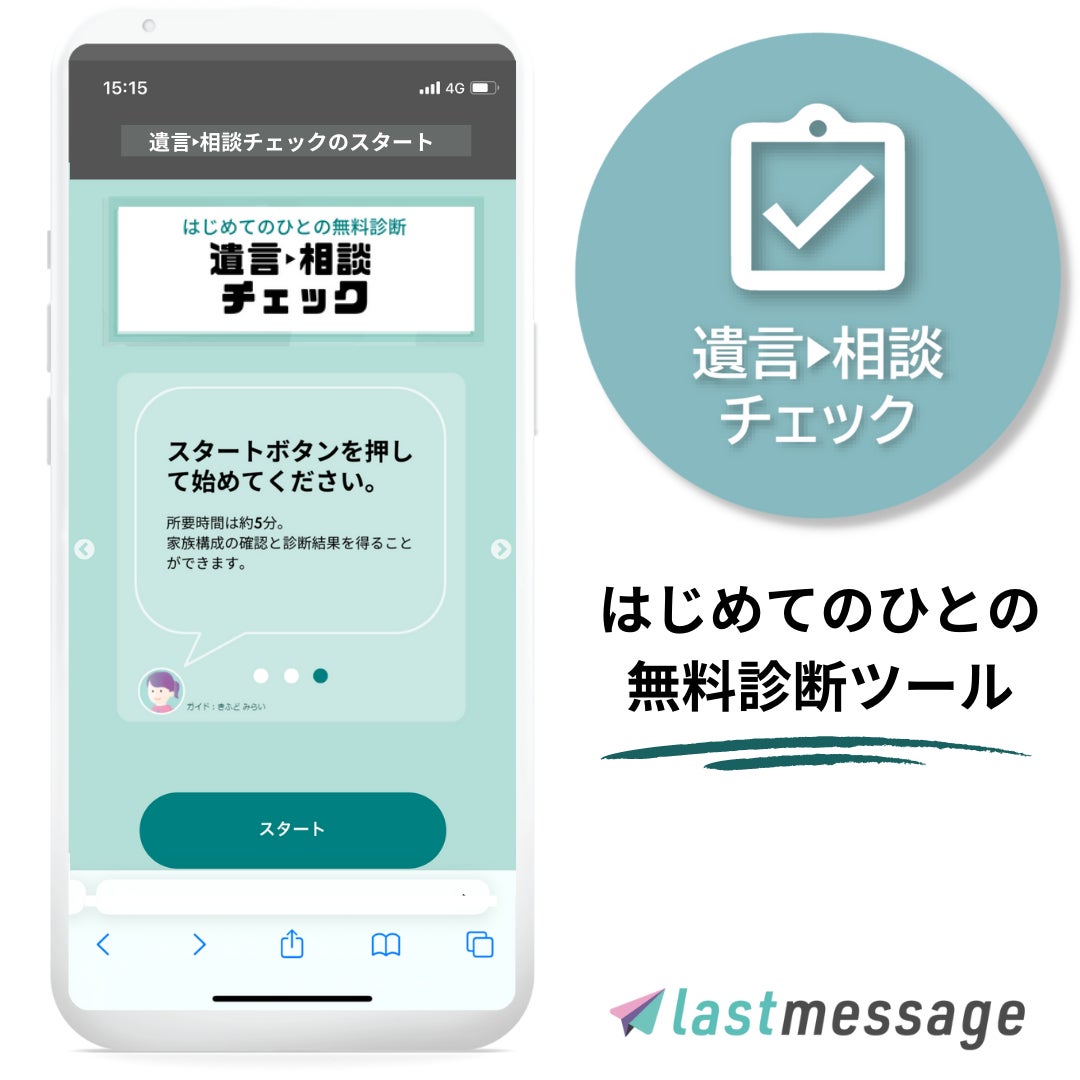 デジタル遺言*のlastmessage(ラストメッセージ)サービスに「遺言‣相談チェック(https://lastmessage.rip/interview)」が新登場!はじめて遺言書を作成する遺言者のガイド役となる無料のオンライン診断ツール「遺言‣相談チェック」をリリース致しました。