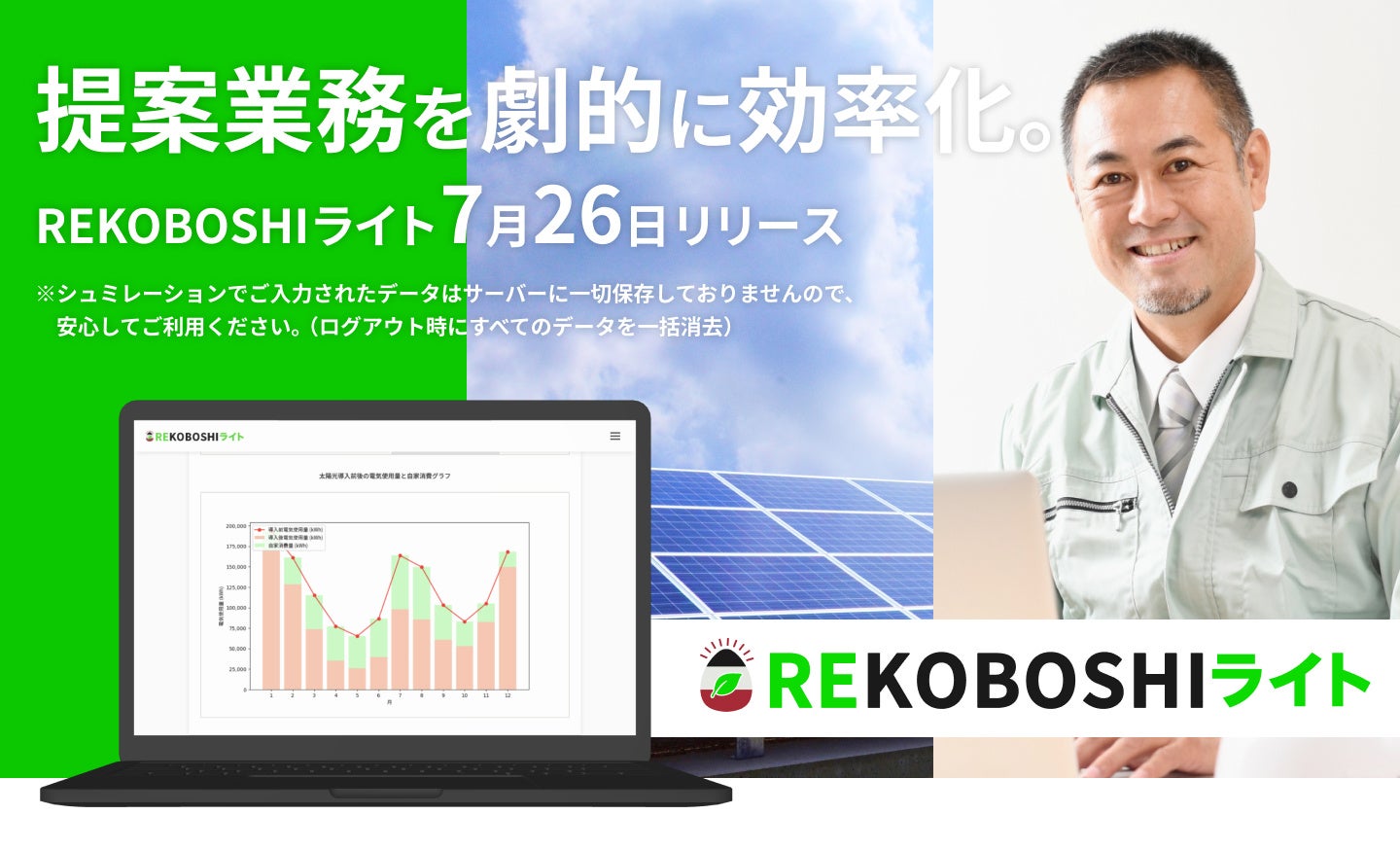 ⾃家消費型太陽光発電の概算シミュレーションサービス「REKOBOSHI ライト」をリリース