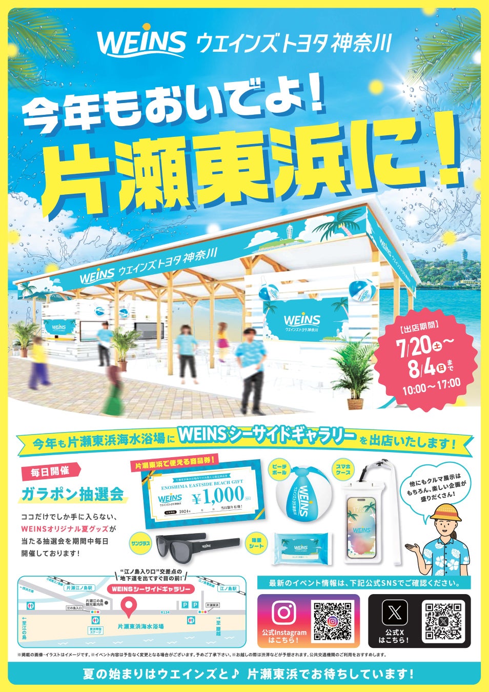 この夏、片瀬東浜海水浴場「WEINS シーサイドギャラリー」でお待ちしております。ぜひ、遊びに来てください。