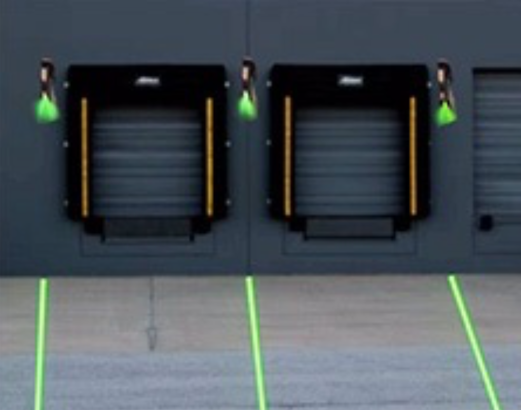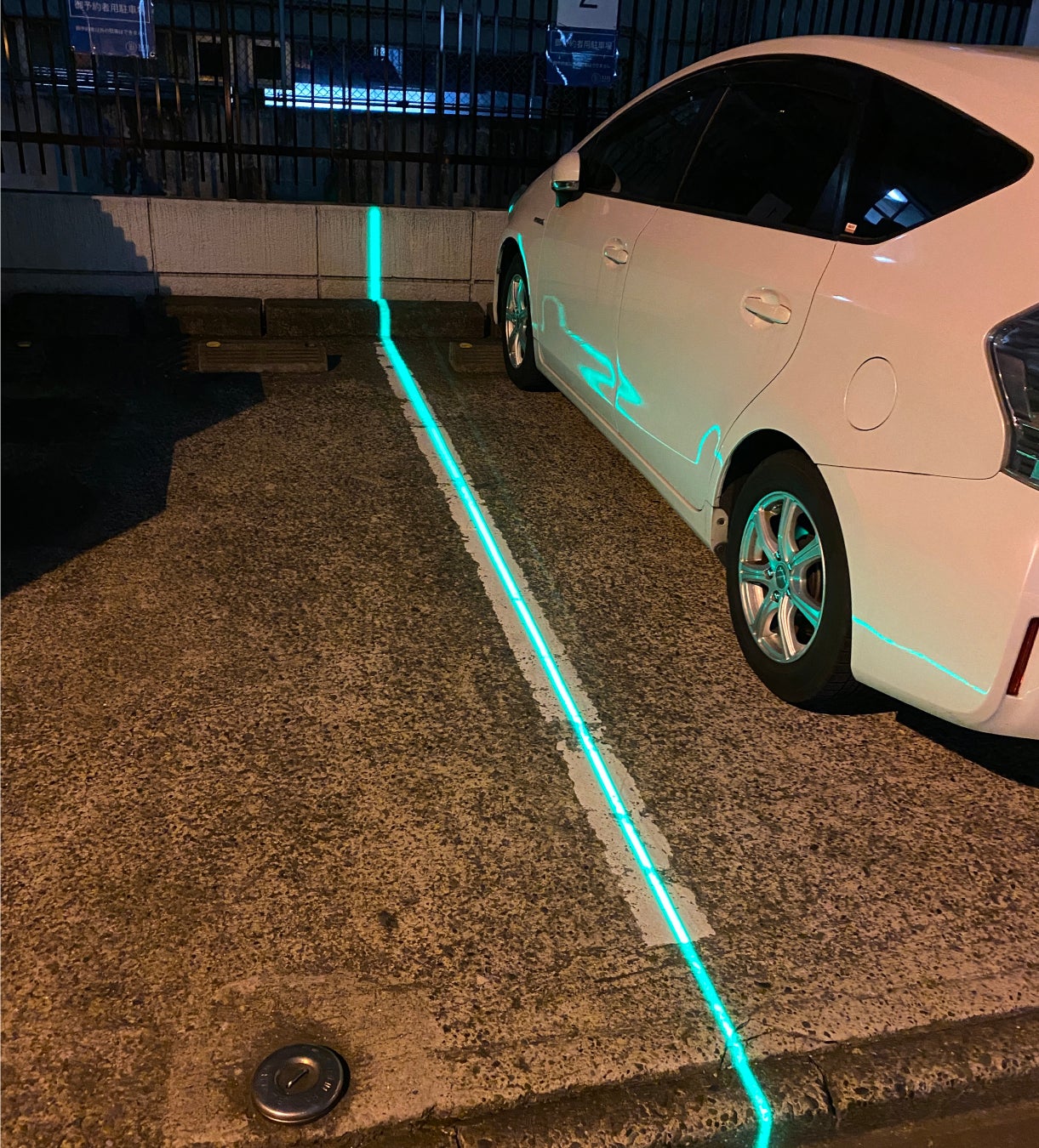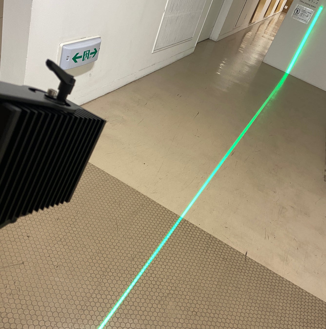 レーザーの光を直線に投射。道路の白線・駐車場やトラックヤードなど、進入や停止の区切りなど