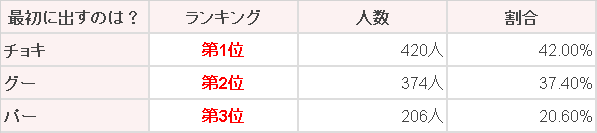 じゃんけんで最初に出すのはグー?チョキ?パー??