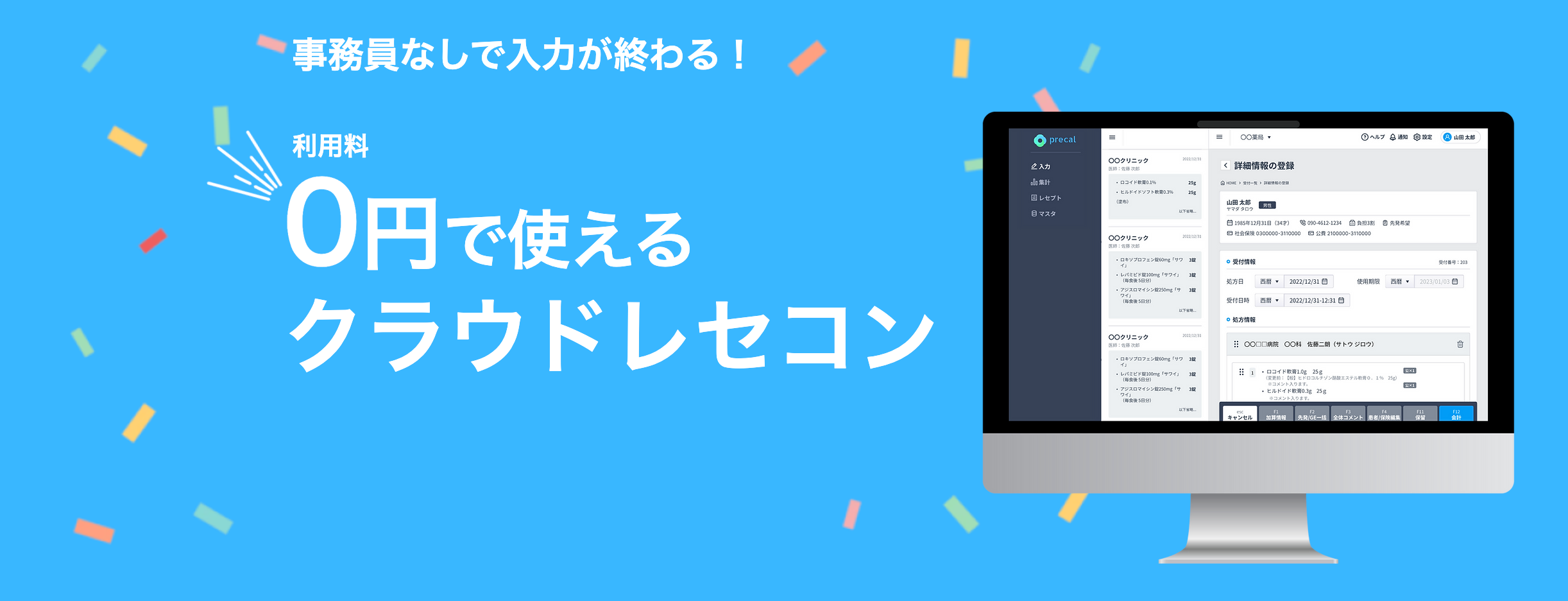 プレカル、利用料無料のクラウドレセコン「プレカルレセコン」を発表
