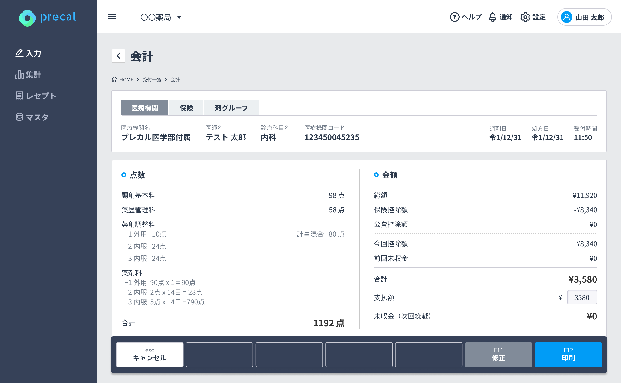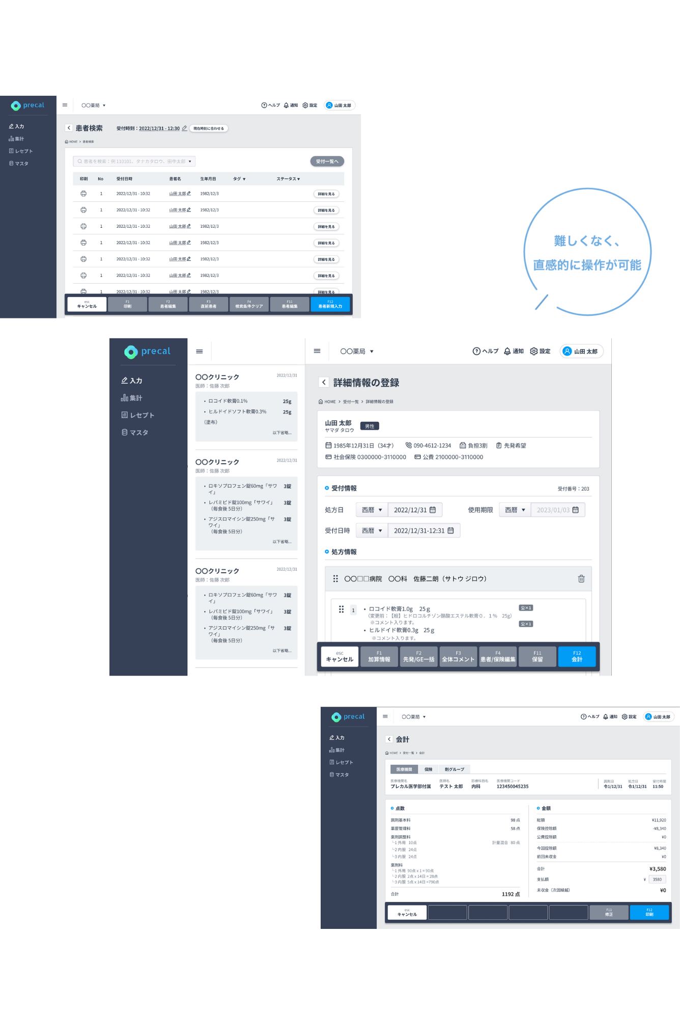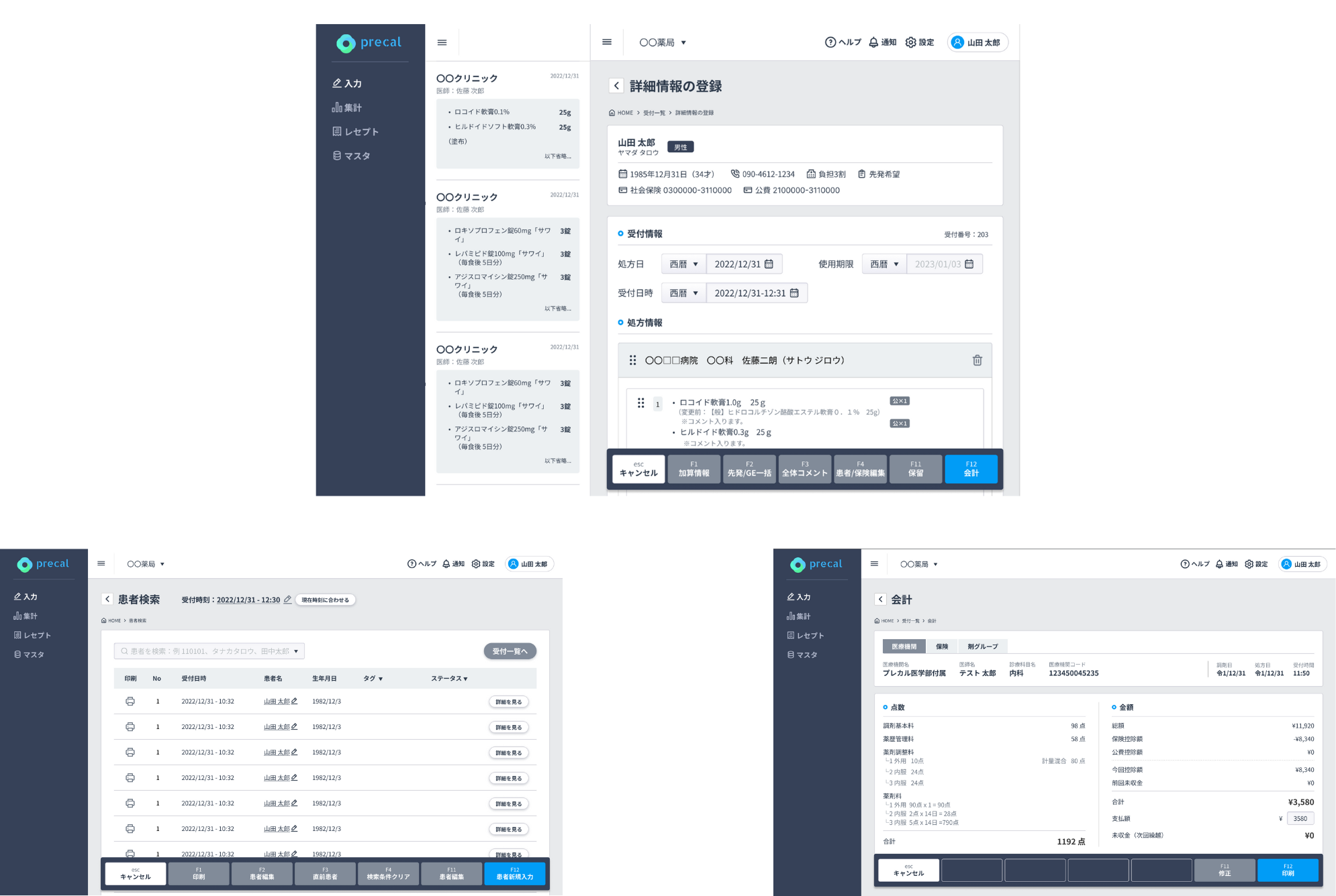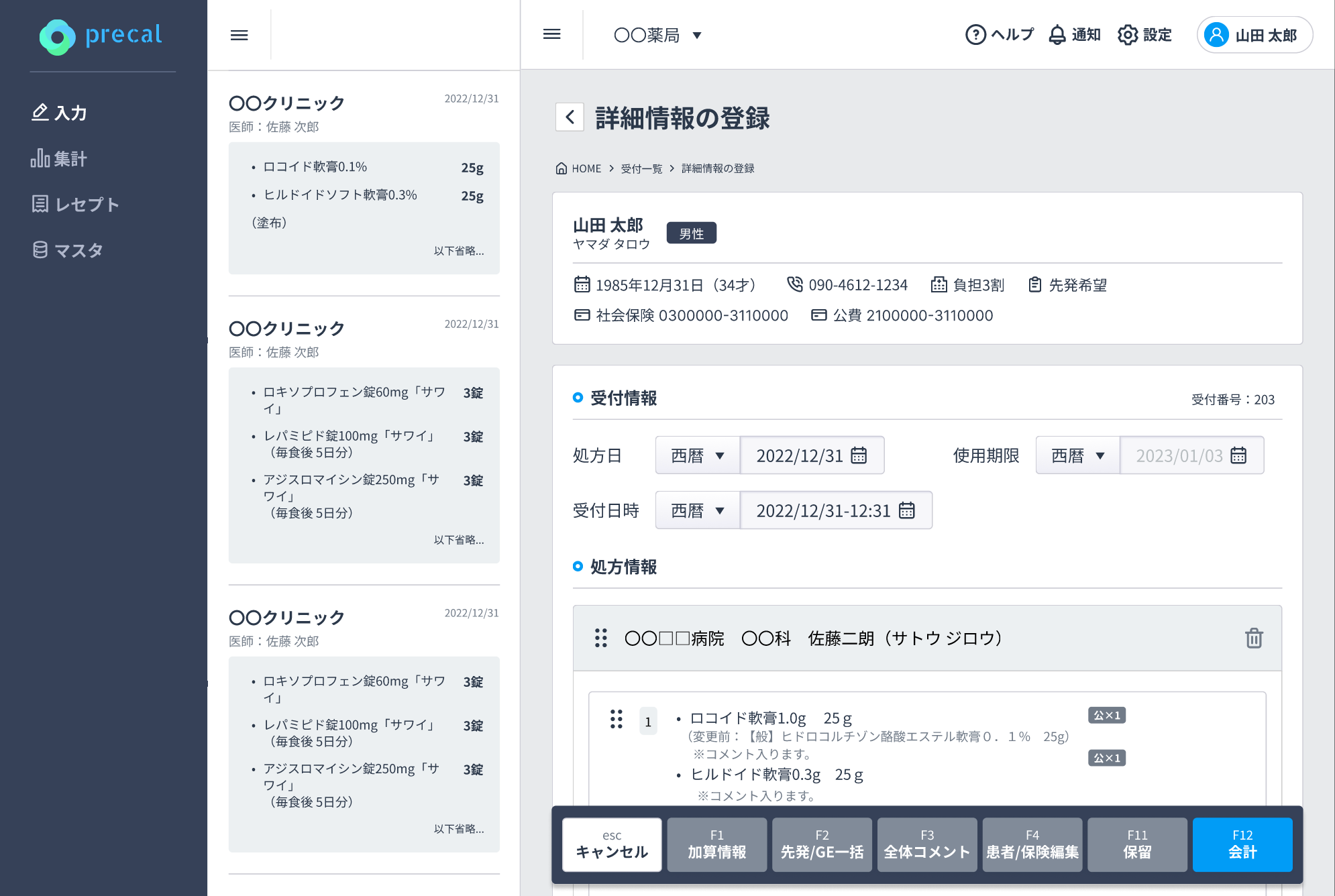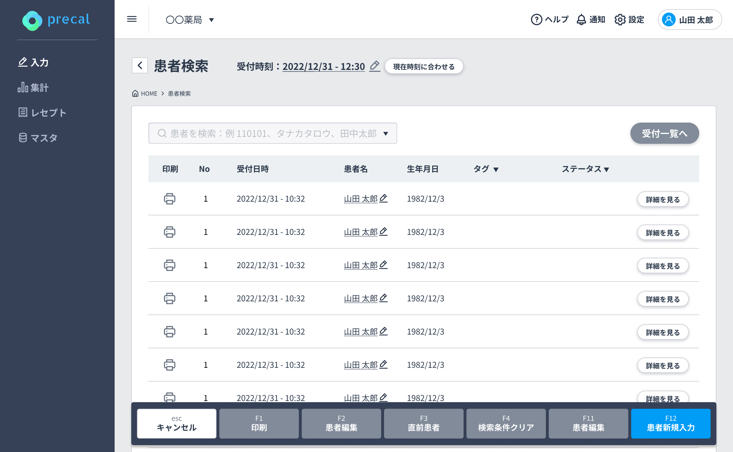 プレカルの処方箋入力代行サービスは患者様の受付~帳票等の印刷まで全て自動で行われます。