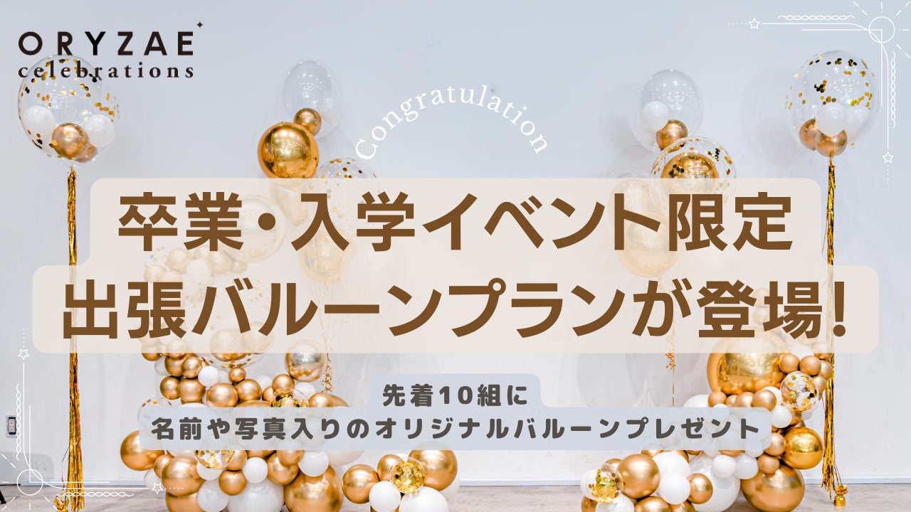 ORYZAE株式会社(本社:東京都港区)が展開する出張バルーンデコレーションブランド「ORYZAE Celebrations (オリゼセレブレーションズ)」は、3月〜4月に開催される卒業や入学などのイベントを出張バルーンで彩る限定プランの販売を開始いたしました。