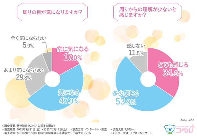 また、特性について周りの方の理解が足りていないことから、発達障害(ADHD)を持つお子様に対しての周りの目が気になる方が多くいるようです。