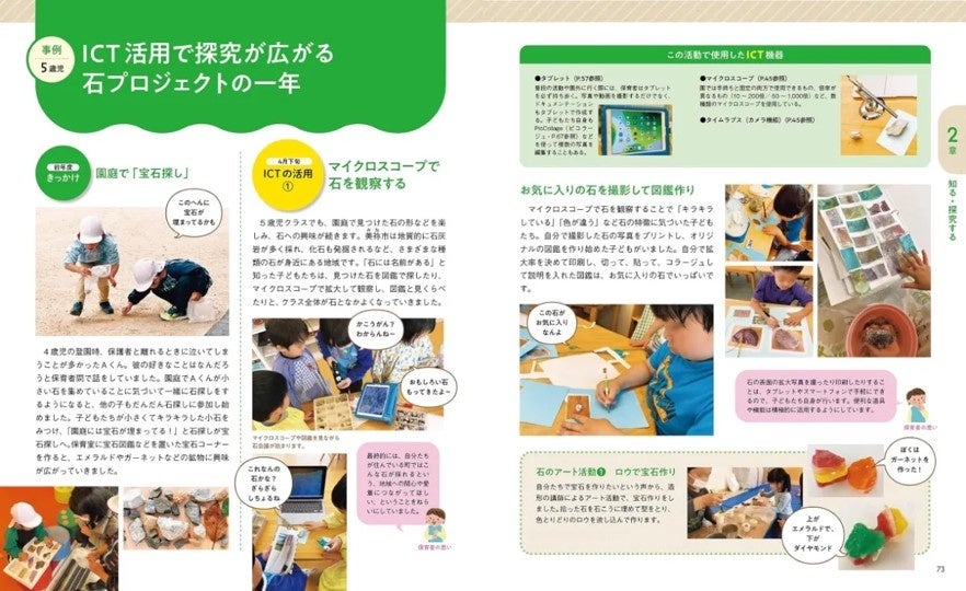 実際の園の活用事例を、豊富な写真と共に紹介。幼児期における「直接体験」の重要性を意識しながら、ICTがどのようにその体験を豊かにする可能性があるのかを解説。スマートエデュケーションが手がけるICT教材「KitS(きっつ)」導入園の事例も掲載されています。